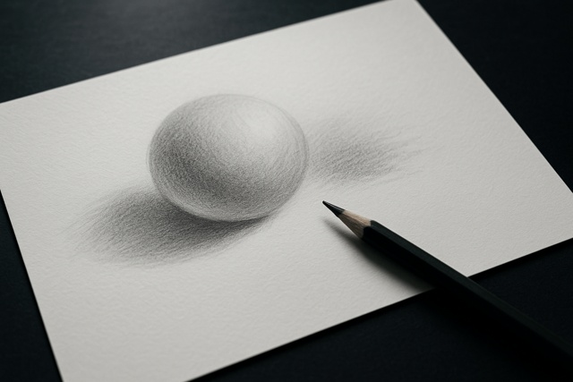 HB〜Bで面を整え、2B〜4Bで最暗一点を締めます。ストロークは面の流れに沿わせ、紙目を均すように重ねます。練り消しで半影中央をわずかに抜くと呼吸が生まれます。白は紙の白を温存し、爪と最も傾いた丸みに一点。境界の硬さは三〜五箇所に絞り、他は柔らかく流します。中間が主役であれば、小さな黒でも画面が決まります。